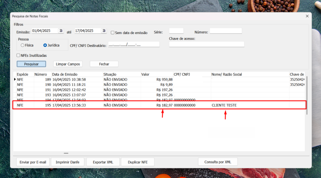 10º Passo: Abra a nota desejada, encontre a nota com o valor e cliente corretos. Dê “dois cliques” para abrir a nota selecionada: