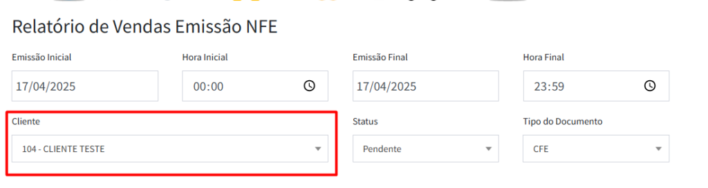 3º Passo: Filtre pelo cliente, no campo de “Cliente”, digite ou pesquise o nome para localizar.