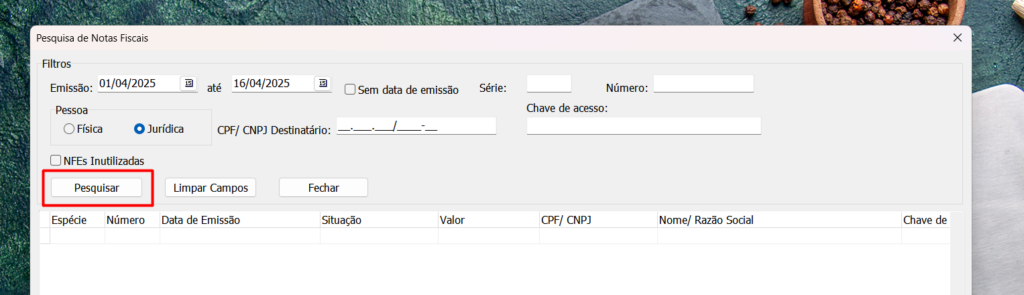 9º Passo: Pesquise a nota, clique em “Pesquisar” para exibir as notas geradas: