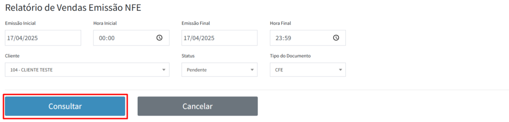 4º Passo: Clique em “Consultar“, isso irá trazer todas as vendas com base nos filtros selecionados.