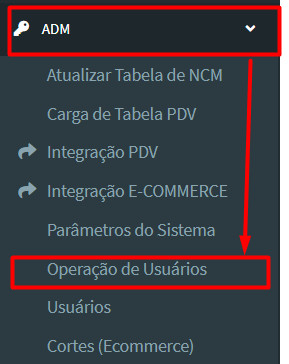 1º Passo: Dentro do “menu de navegação”, vá em “ADM” > “Operações de Usuários”: