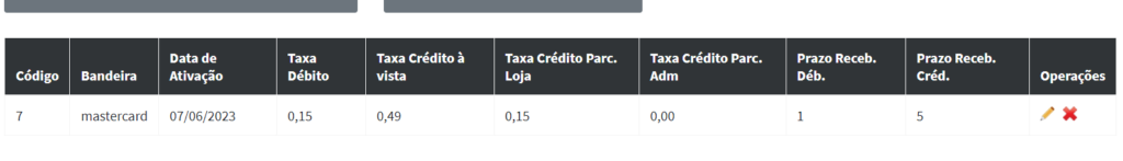 Prazo Receb. Créd.: Por padrão está como 30 mas caso seja necessária alteração, insira a quantidade de dias para o recebimento de crédito;