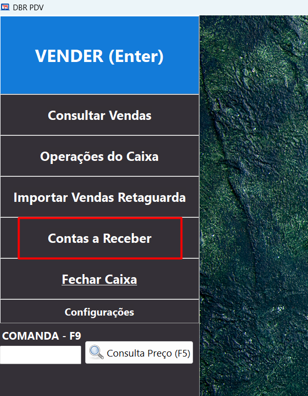 1º Passo: Dentro do PDV, na tela principal, clique em “Contas a Receber”: