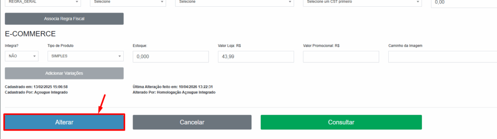 4º Passo — Confere os dados e altere conforma a necessidade, após a edição, role a tela para baixo e clique em Alterar