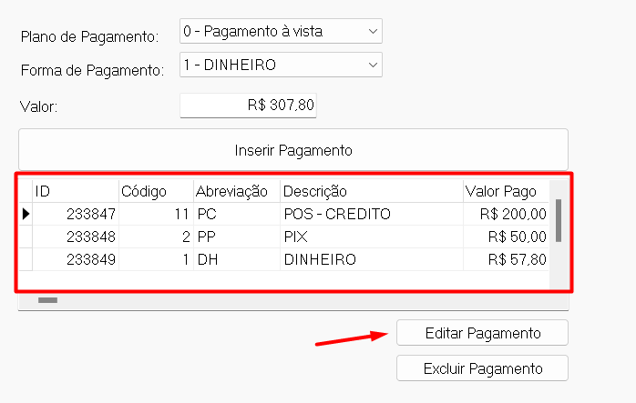 7º Passo: Na aba 'Cobrança/Impostos', basta conferir o valor e a forma de pagamento do cupom para concluir todo o processo de emissão. Se necessário alterar alguma forma de pagamento, é só clicar nela e clicar em 'Editar Pagamento'.