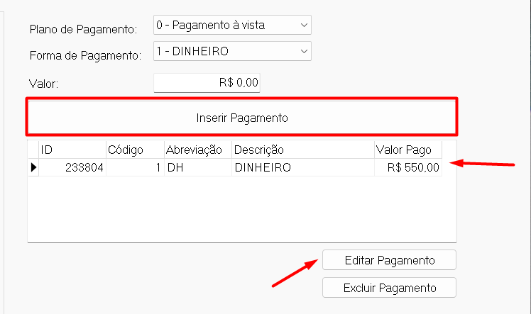 Caso haja necessidade de edição, na pré-visualização selecione o item e clique em "Editar Pagamento" :
