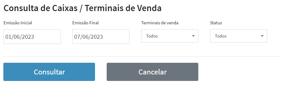 2º Passo: Utilize os campos, "Emissão Inicial" e "Emissão Final" para filtrar o período em que você deseja realizar a conferência de caixa;