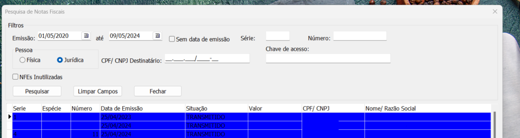 1º Passo: Dentro do EMISSOR DE NOTA vá até a aba, “Notas Fiscais” > “Pesquisar Notas”: