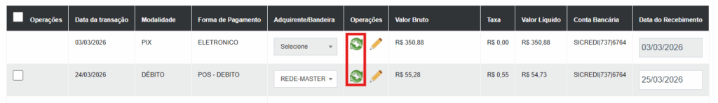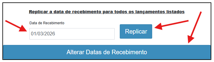 6° Passo: Caso queira alterar a data de recebimento para todos os lançamentos listados na tabela, é só localizar essa janela.