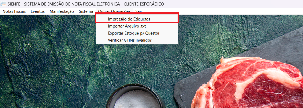 1º Passo: Dentro do emissor de nota fiscal, vá até "Outras Operações" > "Impressão de Etiqueta":