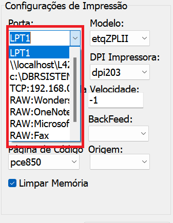 5º Passo: Selecione o modelo da impressora que você possui no campo "Porta":
