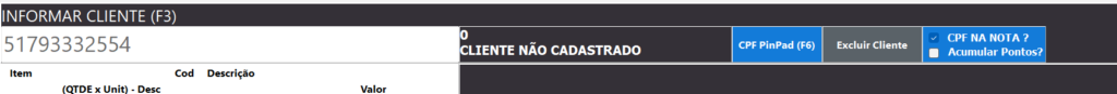 4ºPasso: Quando aparecer no campo ao lado "Cliente não cadastrado" significa que o CPF foi inserido: