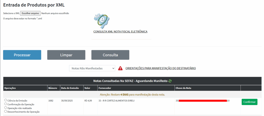 oficialmente sobre uma nota emitida contra o seu CNPJ. Por meio desse recurso, a empresa pode confirmar, negar ou desconhecer a operação registrada, garantindo segurança e transparência nas transações fiscais.