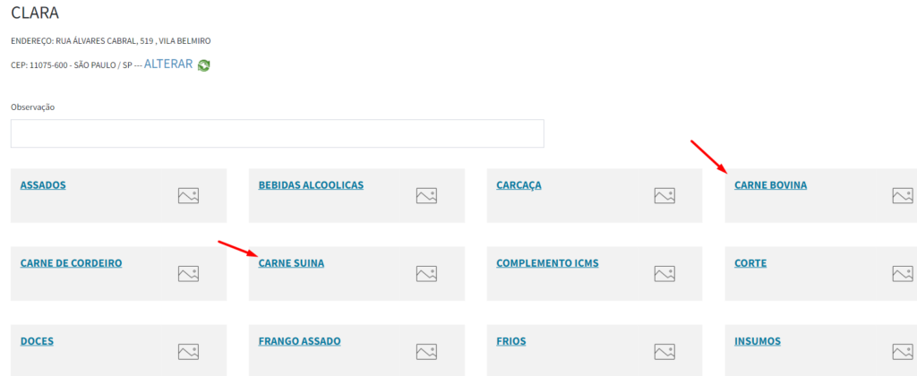 3º Passo: Dentro da comando do cliente selecione a categoria onde estão os produtos da venda: