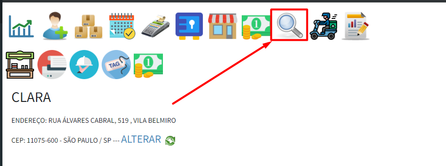 7º Passo: Para acompanhar o andamento dos pedidos, vá até o ícone de "LUPA" no topo da tela: