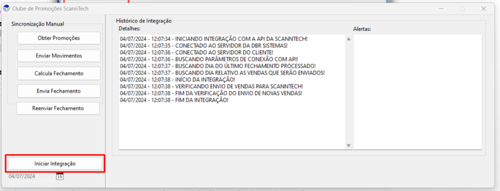 3.2.1) Inicie a operação clicando em, "Iniciar integração":