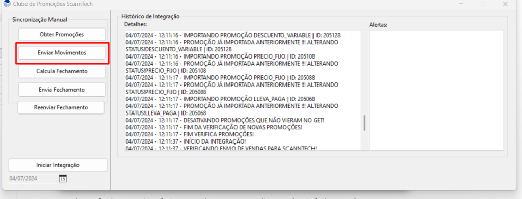 3.2.3) Para enviar as promoções à Scanntech, clique em "Enviar Movimentos":