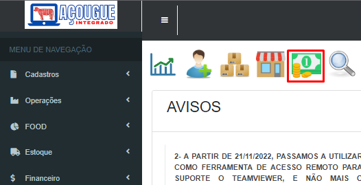 1º Passo: Dentro do retaguarda, vamos lançar a venda feita por delivery. Clique no ícone de nota destacado com verde, sinalizado como “Venda Balcão”: