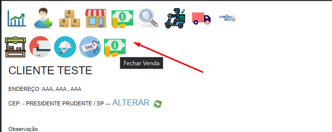 6º Passo: Para fechar a venda pelo retaguarda, clique no ícone de "nota", ao lado das opções de impressão: